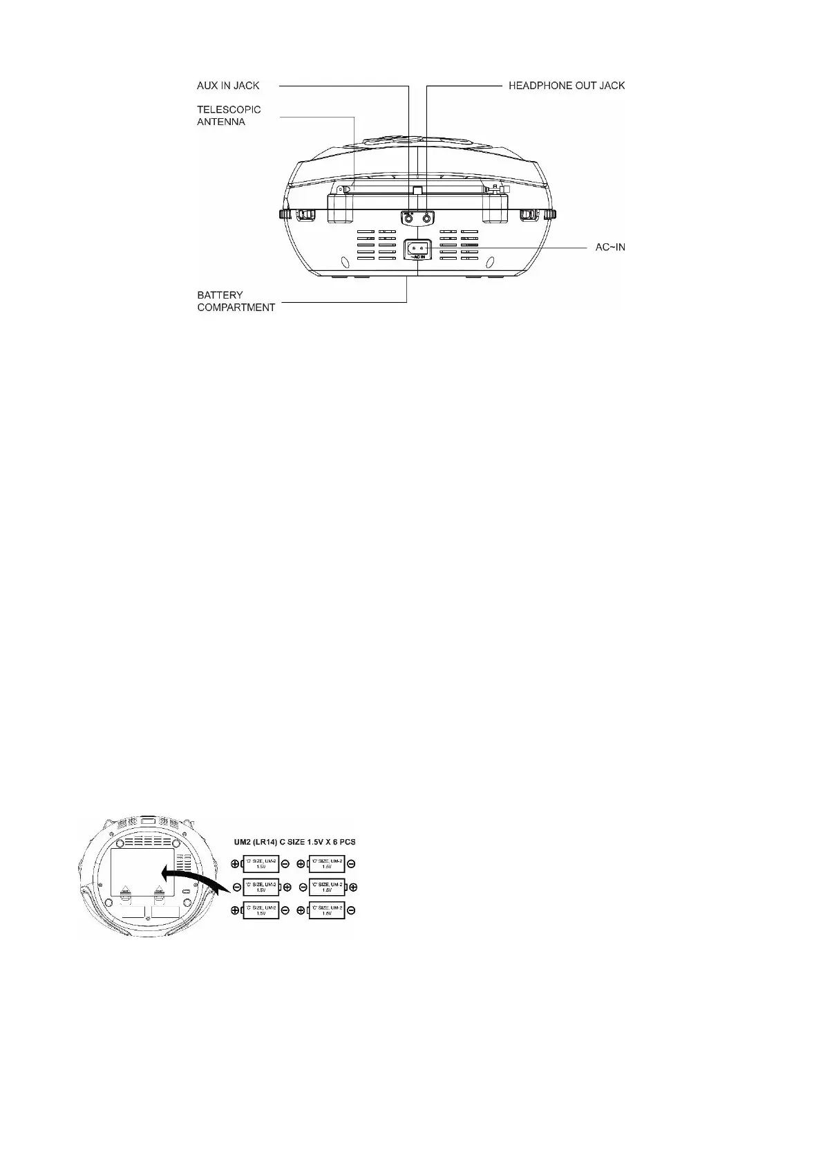insert 6 pcs size C (UM-2) batteries into the battery compartment.