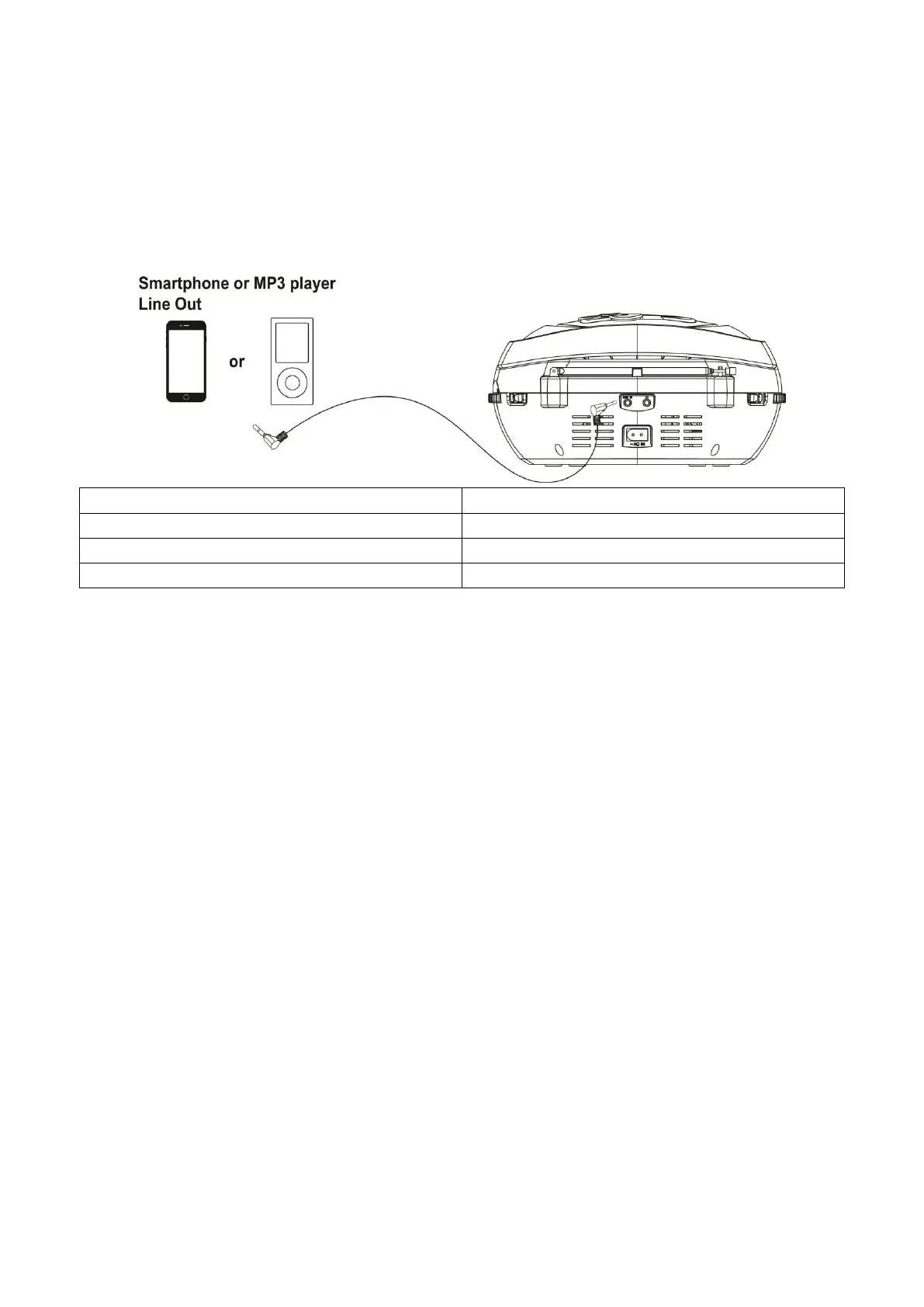 1. Conecte un cable de audio de 3,5 mm (no incluido) a la salida de línea del reproductor externo y el