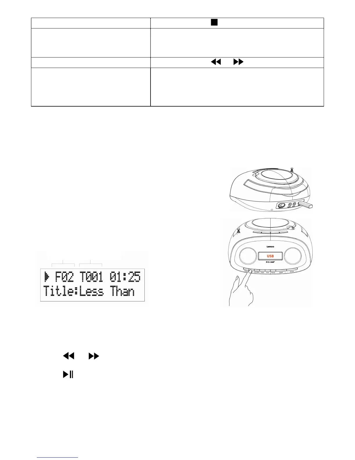 Gebruik en om het gewenste tracknummer te selecteren of druk op “Station (-)/(+)”
