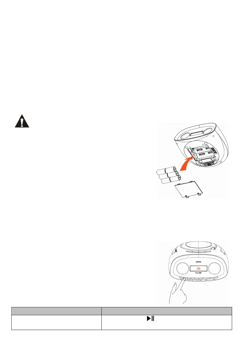 Lenco raadt het gebruik van A-merk batterijen aan. Gebruik geen oplaadbare batterijen.