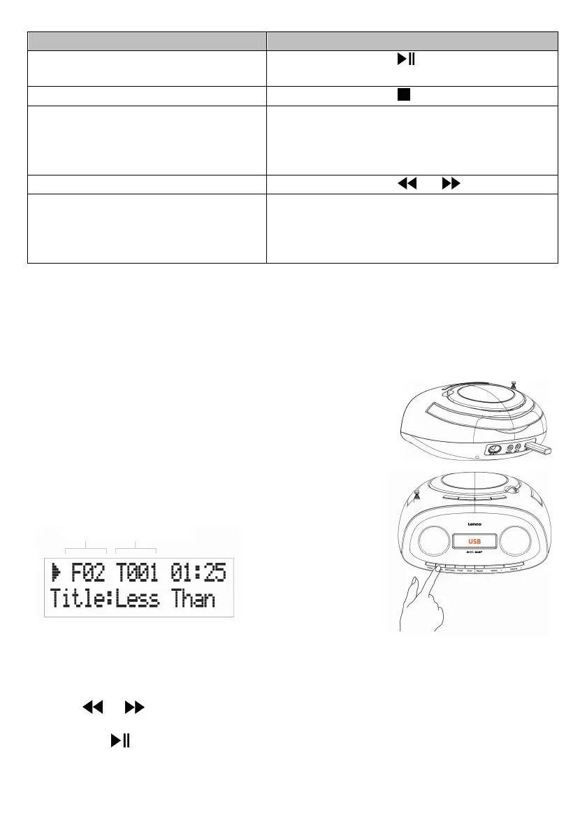 En mode Arrêt CD/USB, appuyez sur « Preset » pour accéder au menu de lecture