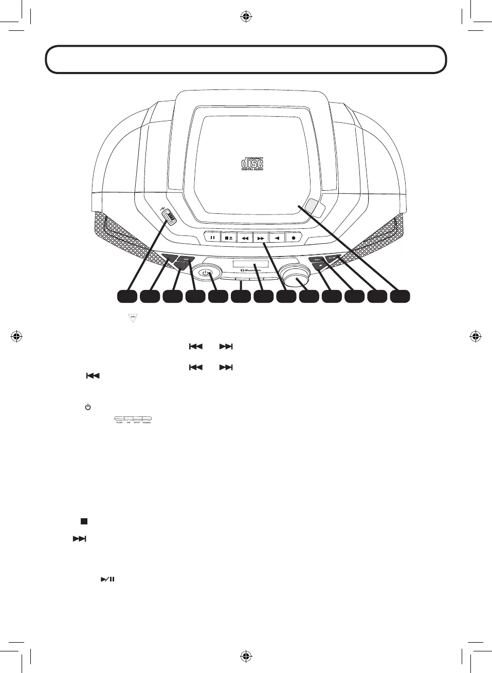CD/USB/BLUETOOTH: Diese Taste drcken, um zum vorherigen Titel zu springen.