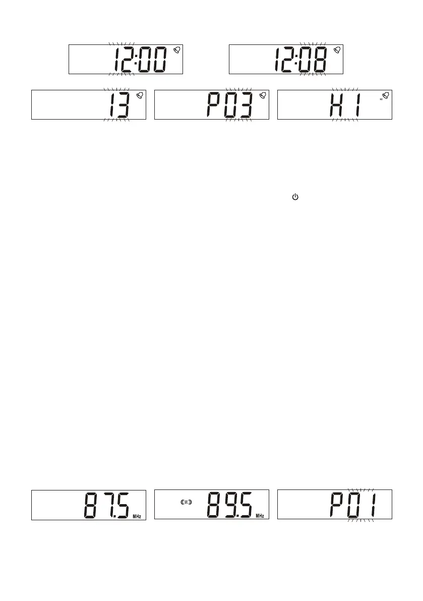 Durante la alarma, presione botón SNOOZE para desactivar temporalmente la alarma durante cinco minutos y el
