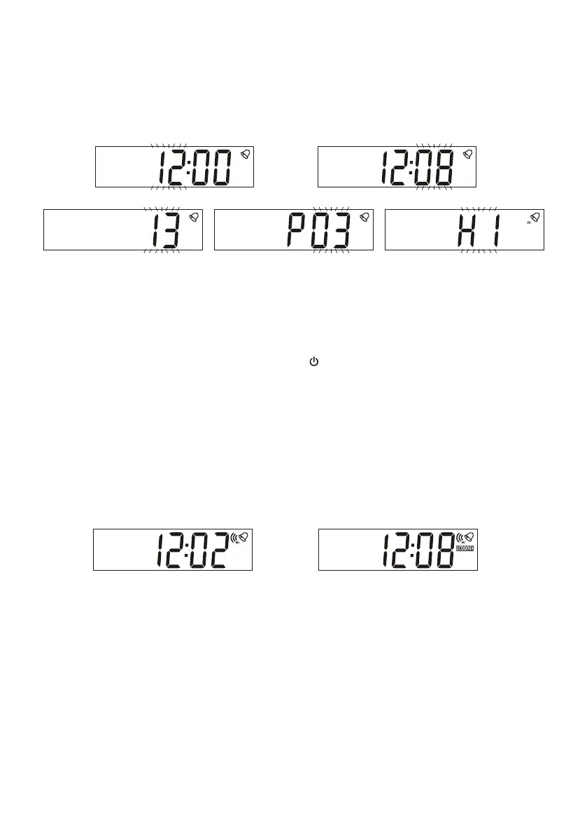 During alarm, press the SNOOZE button will temporary switch off the alarm for 5 minutes and the snooze