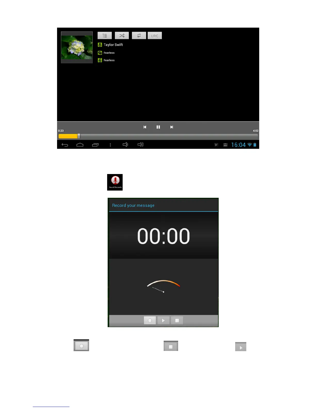 Toque sobre el icono para entrar en el modo de grabadora (vea la imagen).