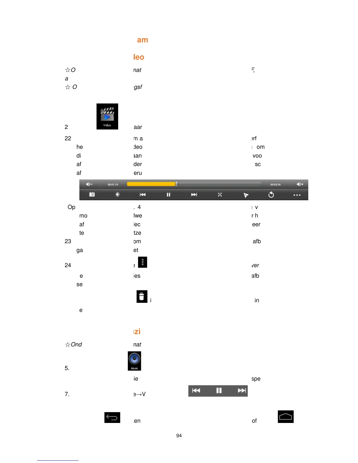 het afspelen van video. Klik op de icoontjes op het scherm om de video