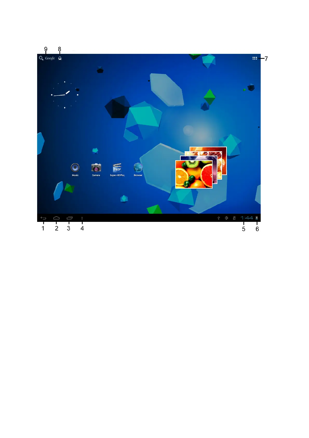 39. Icono de multitarea: toque sobre este icono para mostrar todos los apps activos.