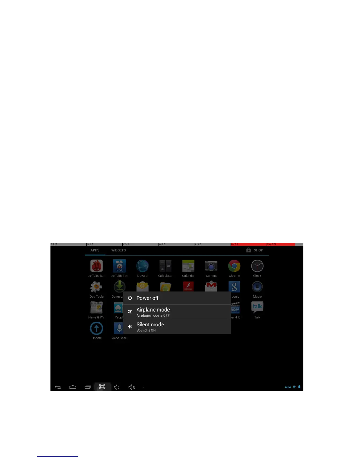 Shutdown: Press and hold the power button for 3-4 seconds until this screen appears: