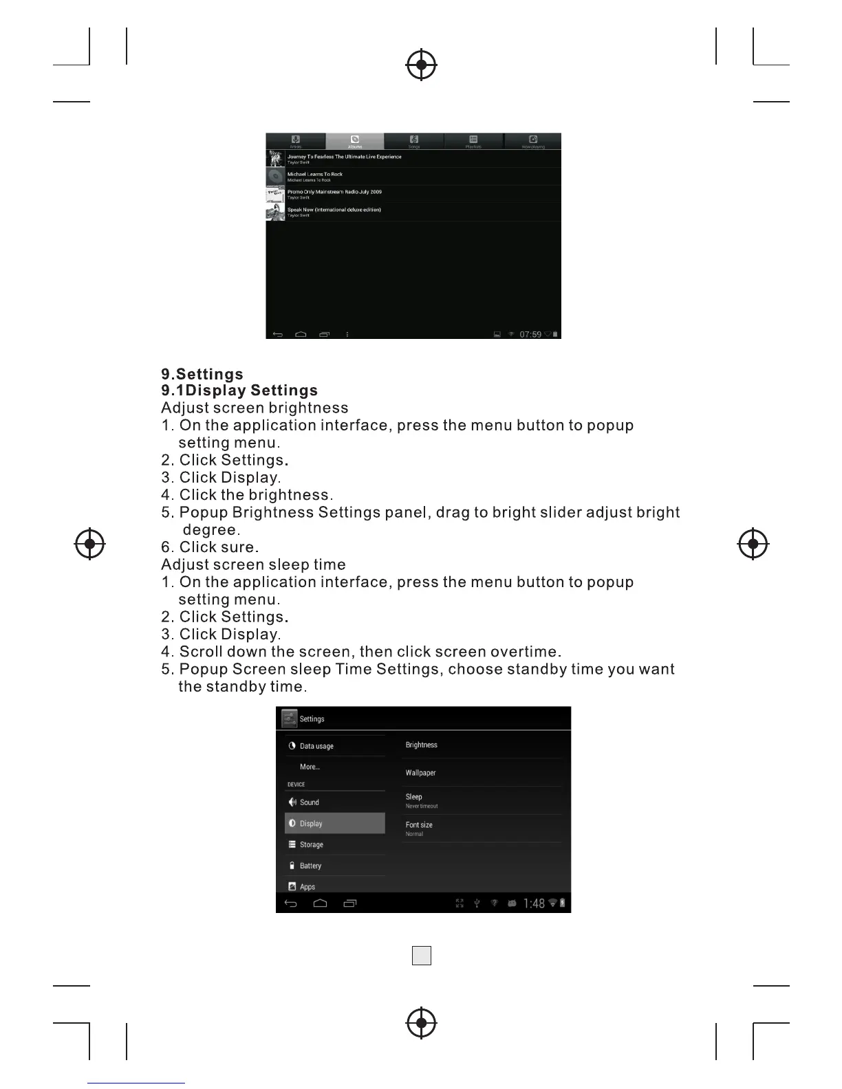 LENCO TAB-740 - Settings and Configuration; Display and Screen Settings