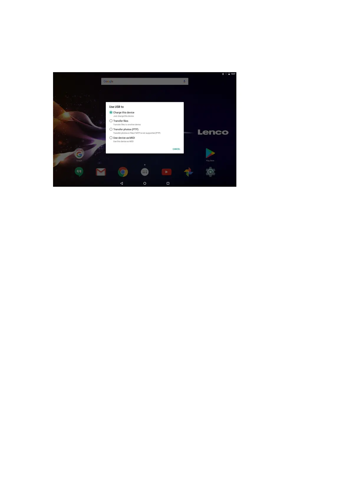 Raak “Media device (MTP)” aan om de ingebouwde opslag van de tablet te koppelen.