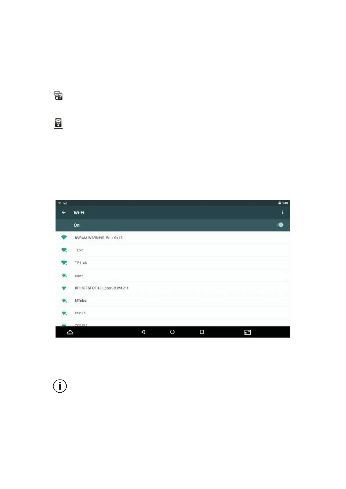 Quand le Wi-Fi est activé, la tablette recherchera et affichera la liste des réseaux