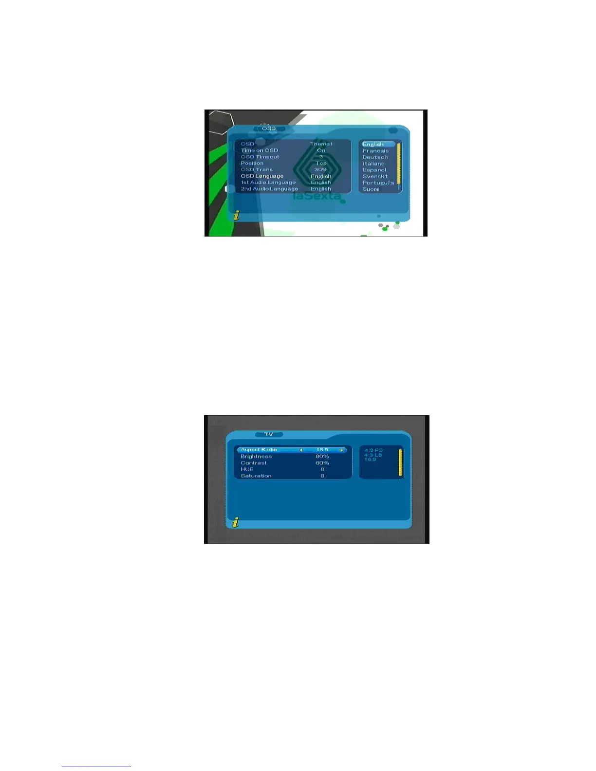 (6). Première et seconde langue : Utilisez les touches ◄► pour accéder à la liste des langues de doublage