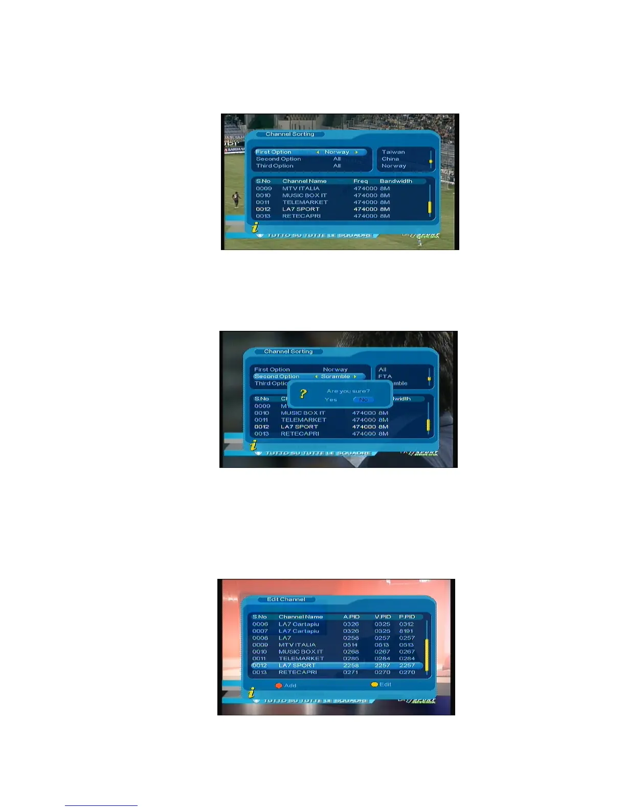 After sorting is set, to realize channel sorting, press ENTER, then the system will hint with the dialogue