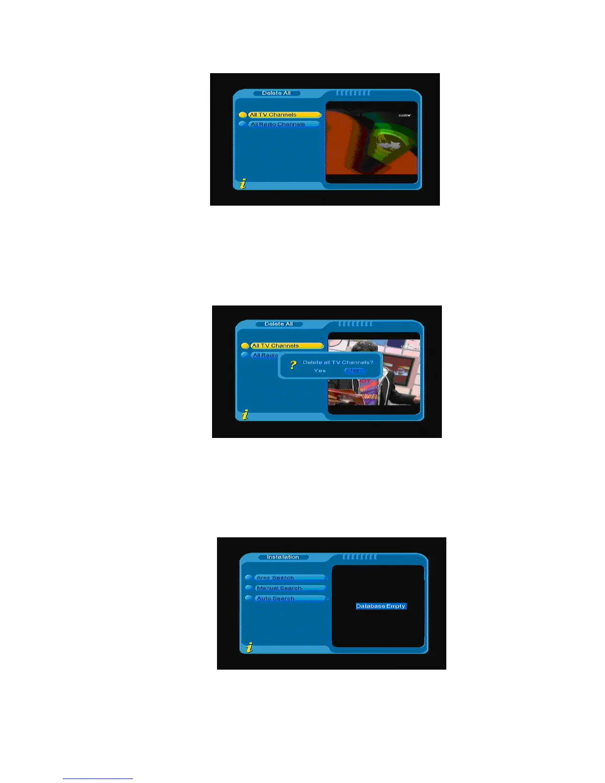 or All Radio channels option, press ENTER , then the system will hint the” Delete all TV Channels? ”dialogue