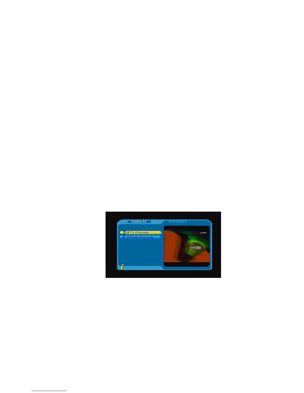la opción All TV Channels o a All Radio channels, pulse el botón ENTER, el sistema preguntará “Delete all