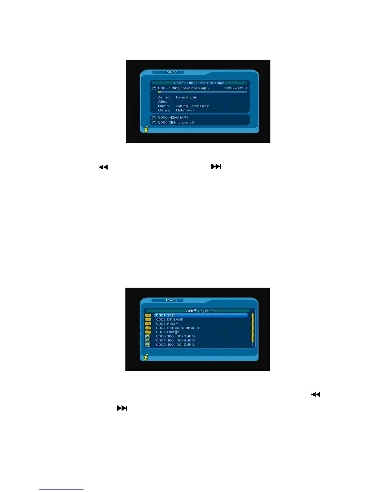 Pulse el botón para reproducir la pista anterior, pulse para reproducir la pista siguiente; pulse el