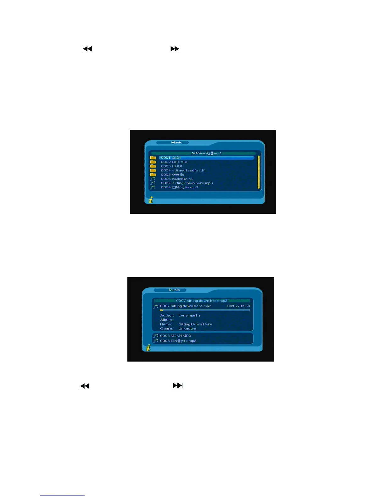 Press▲▼ to choose Music option, and to press ENTER to confirm, enter main directory as shown and
