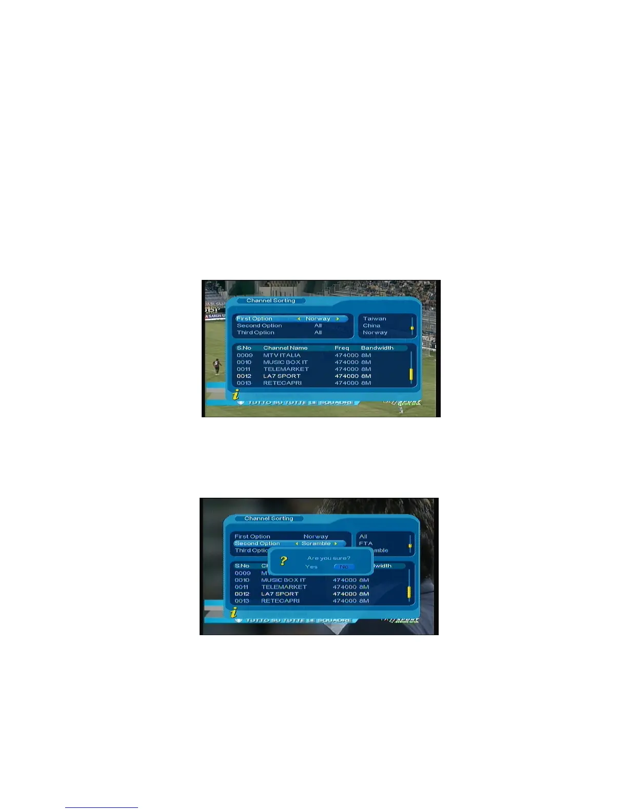 sich im Speicher des Geräts keine Kanäle befinden. Sie Sortier-Seite wird in diesem Fall nicht aufgerufen.