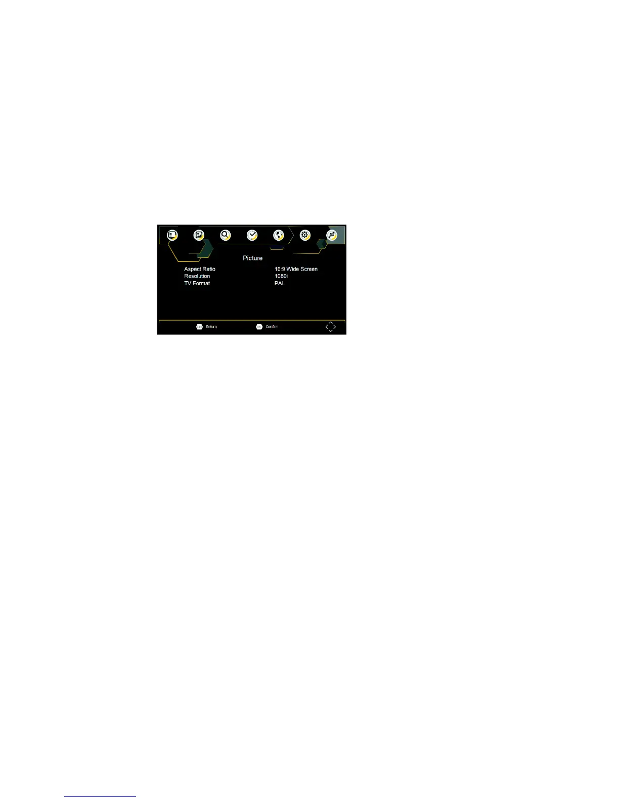 Um auf das Menü zuzugreifen, drücken Sie „SETUP“ und wählen [Picture] (Bild) aus. Das Menü bietet Optionen