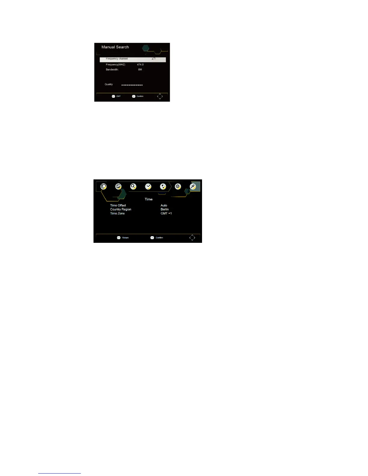 1. Wählen Sie [Manual Search] (manuelle Suche) aus und drücken dann „OK“ oder „RECHTS“. Die