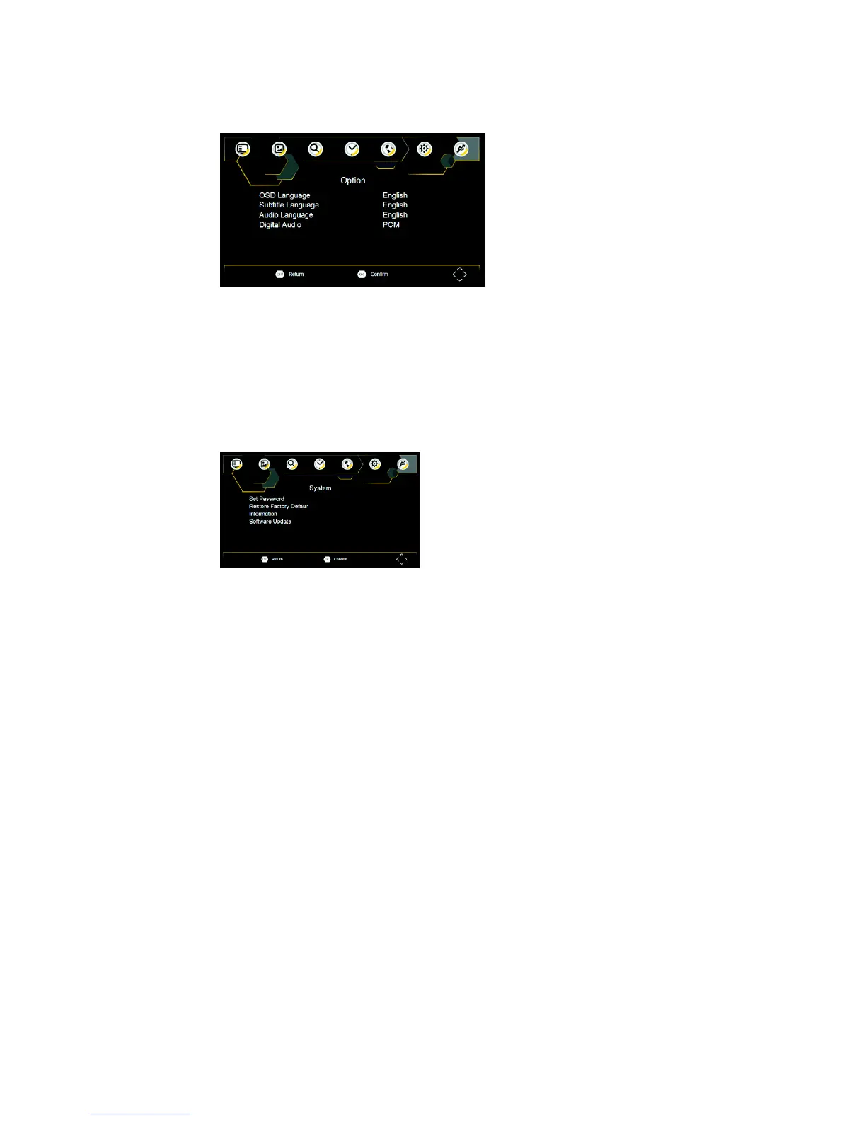 Pour réinitialiser les réglages d’usine de la Set Top Box. Dans le menu d’accueil, sélectionnez [Restore Factory