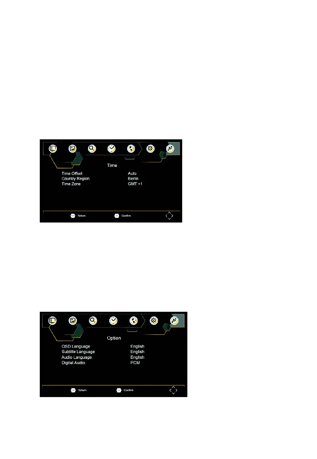 PressUP/DOWNtoselectanoptionandpressRIGHT/LEFTtoadjustthesettings.PressEXITtoexitthemenu.
