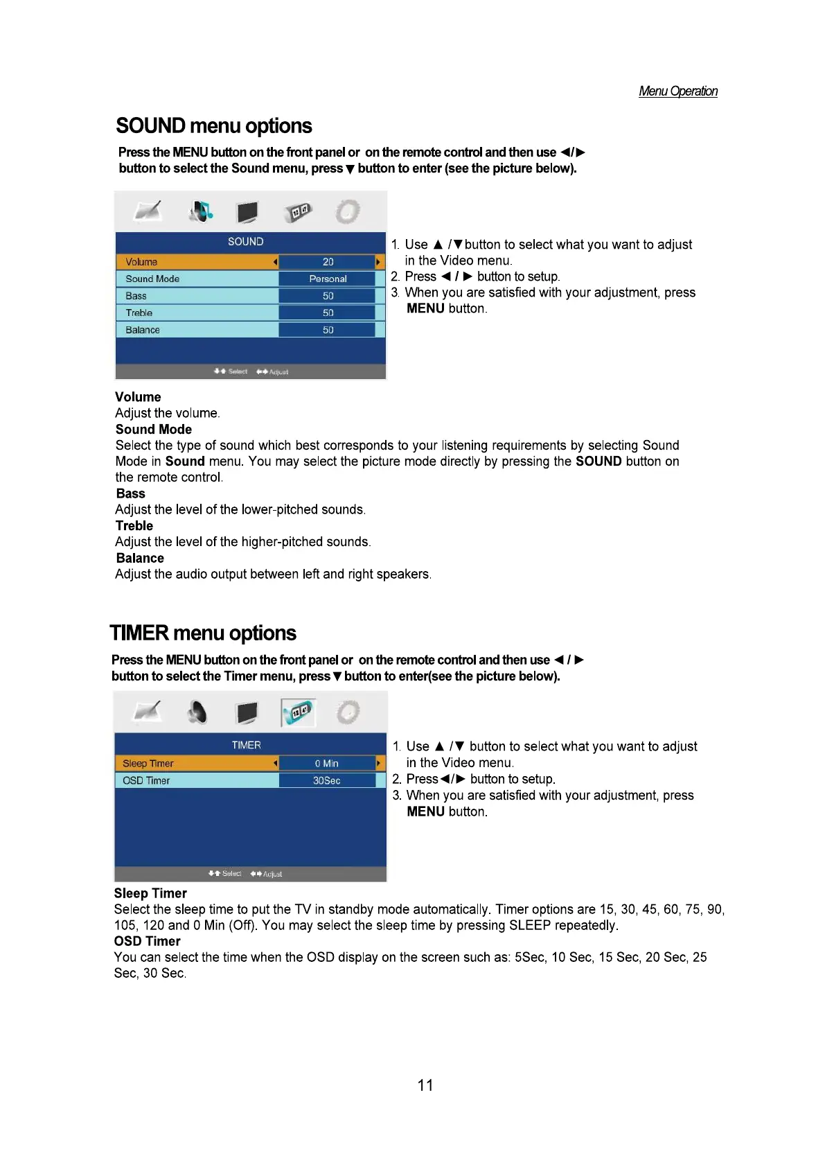 LENCO TFT-2401 - SOUND menu options; Sound Settings