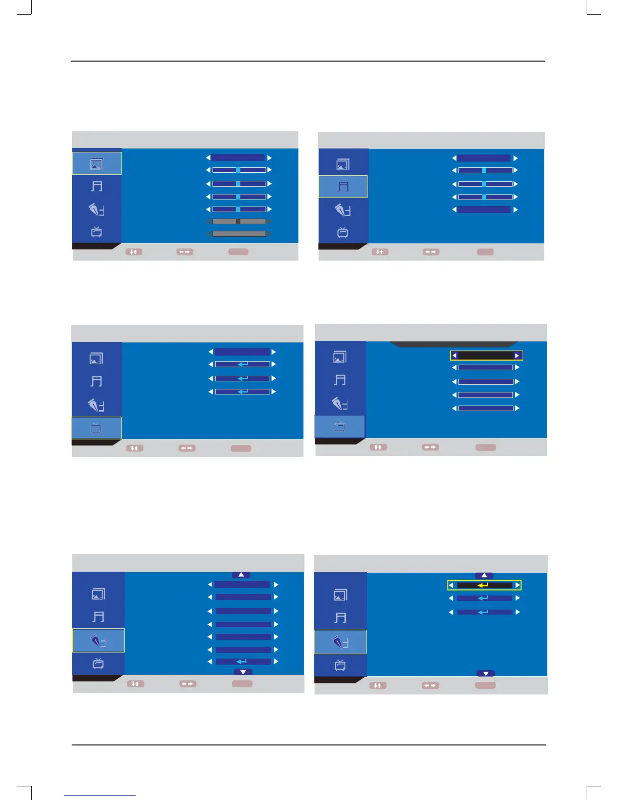(Das Fernsehmenü ist nicht verfügbar, wenn „AV/S-VIDEO als Eingangssignal gewählt wurde.)