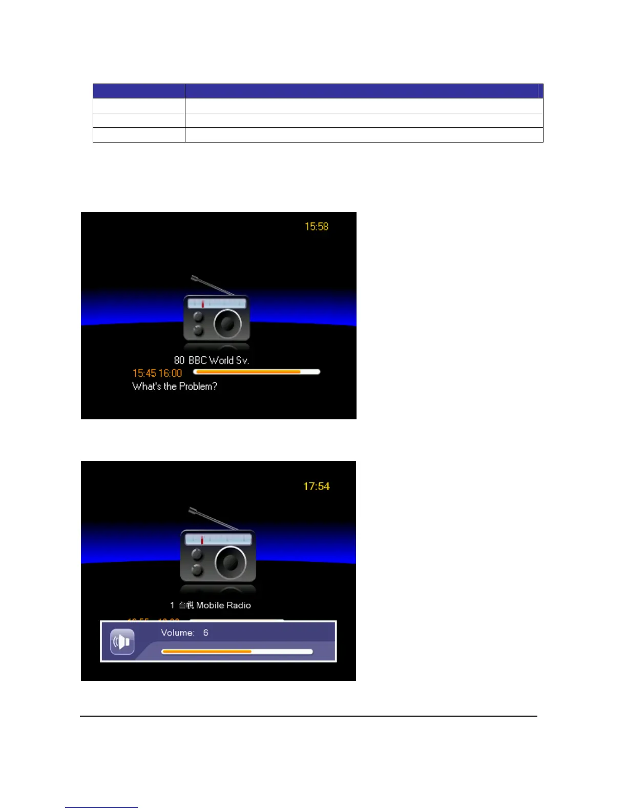 YoucanswapbetweenTVtoRadiobyselectTV/Radio.Press<Up>or<Down>toswitchchannels.