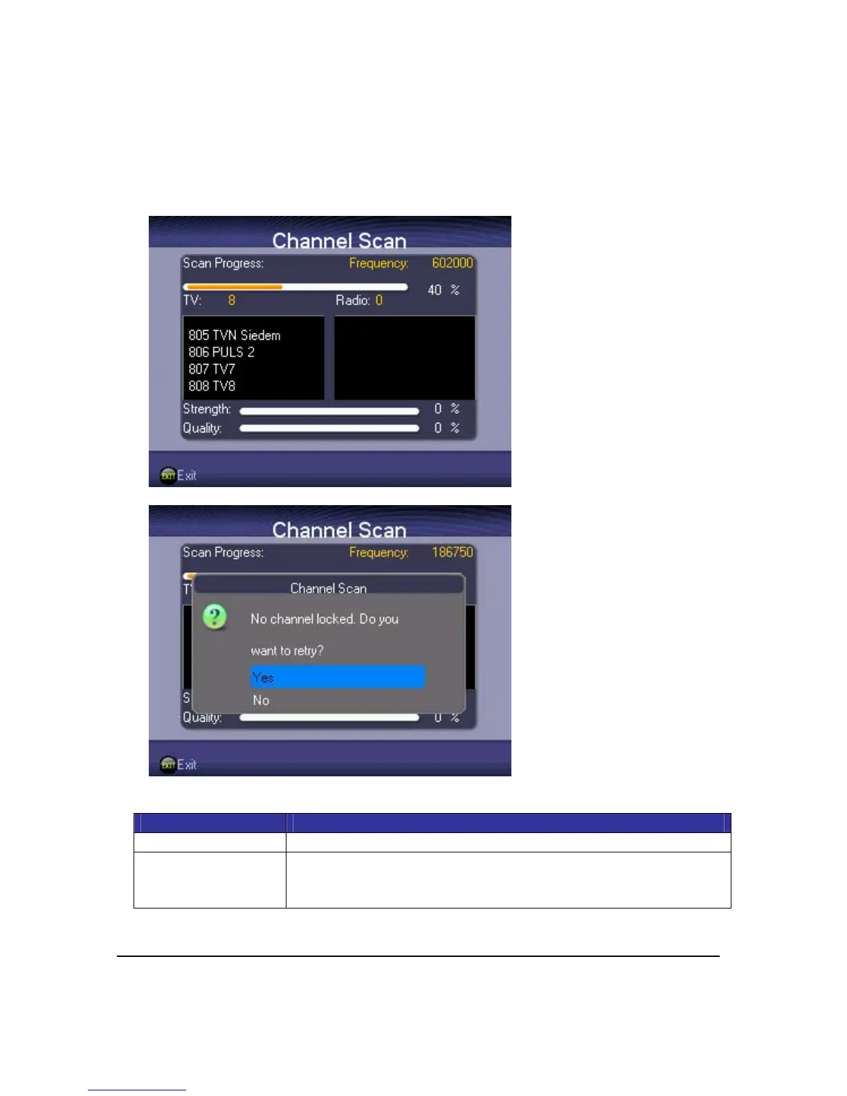 AuswählenvonYESerneutnachSendernsuchen,oderNOauswählen,umzumFenster
