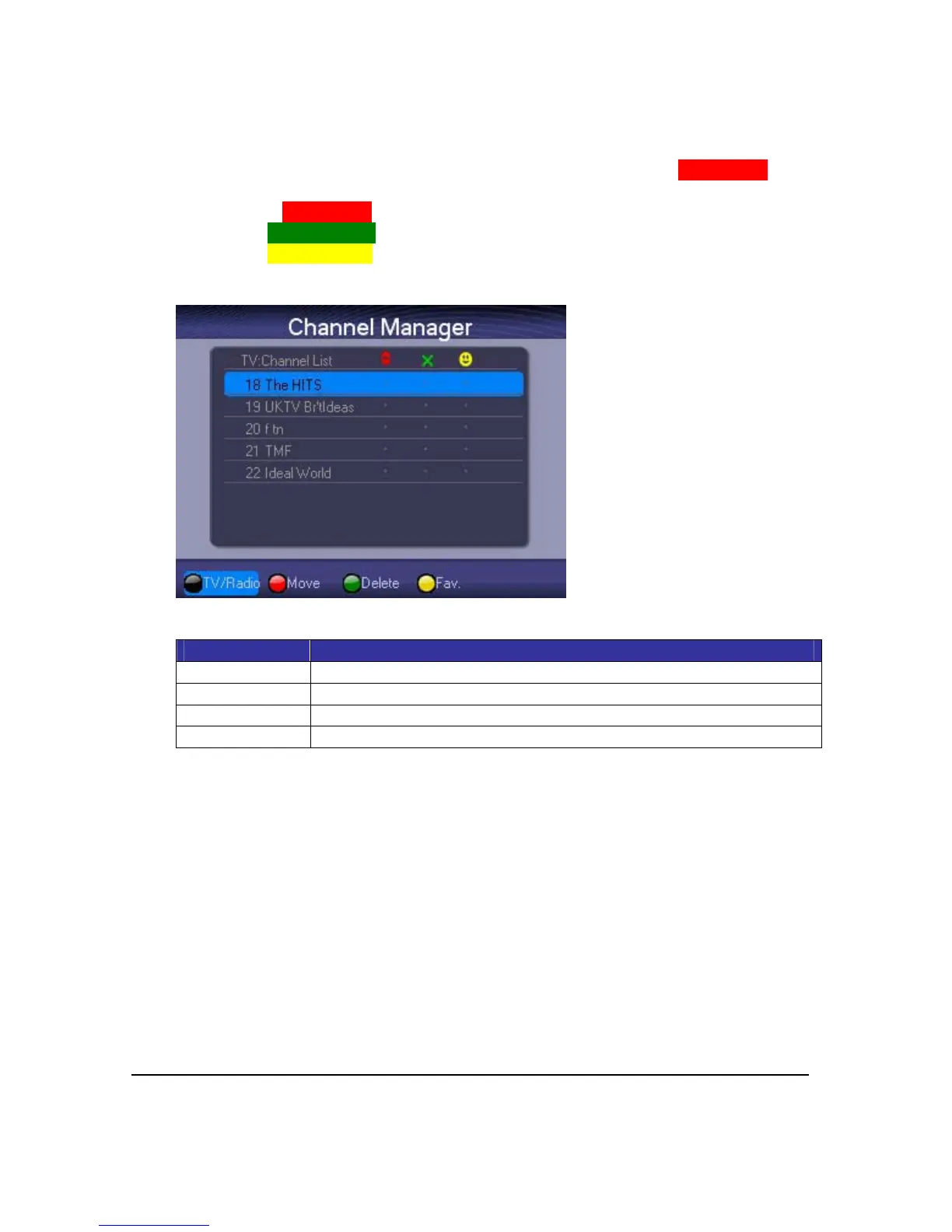 ImMenüChannelManagerkönnenSiedieSenderanordnungändernoderSenderlöschen,