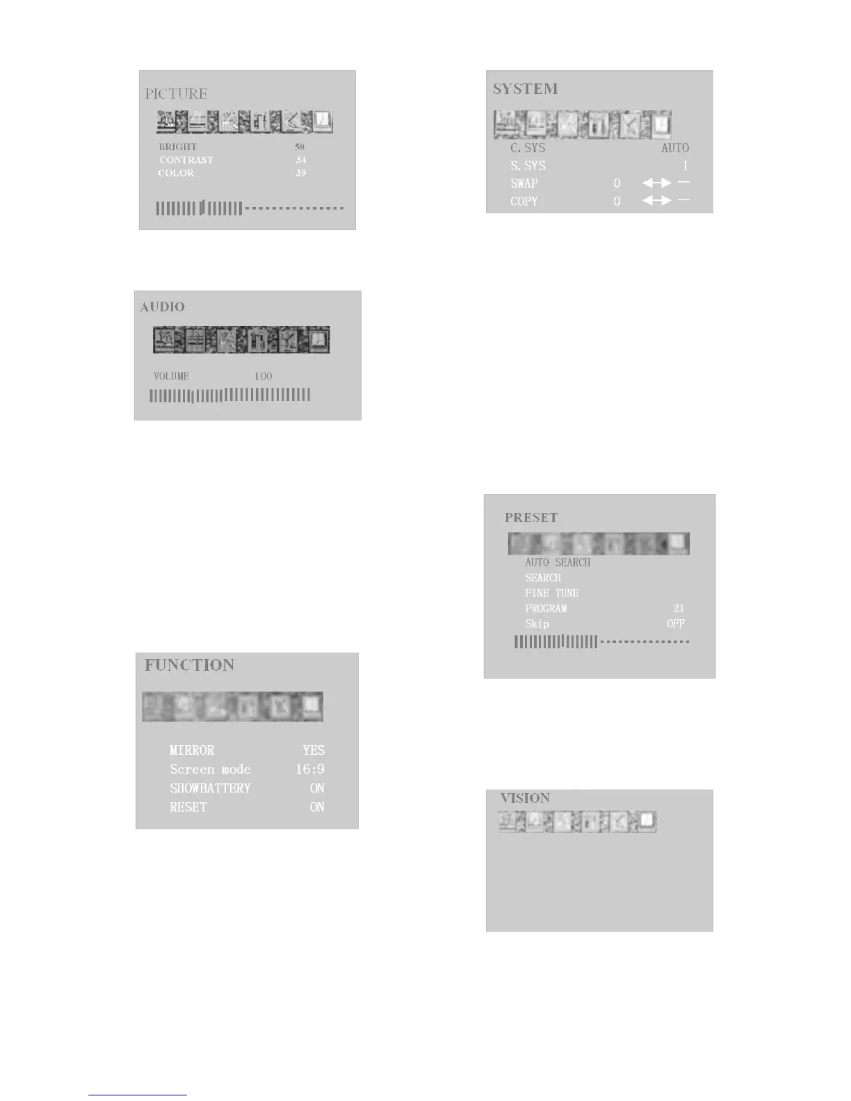 C.SYS: Ajusta el modo color de la TV—Auto, PAL,