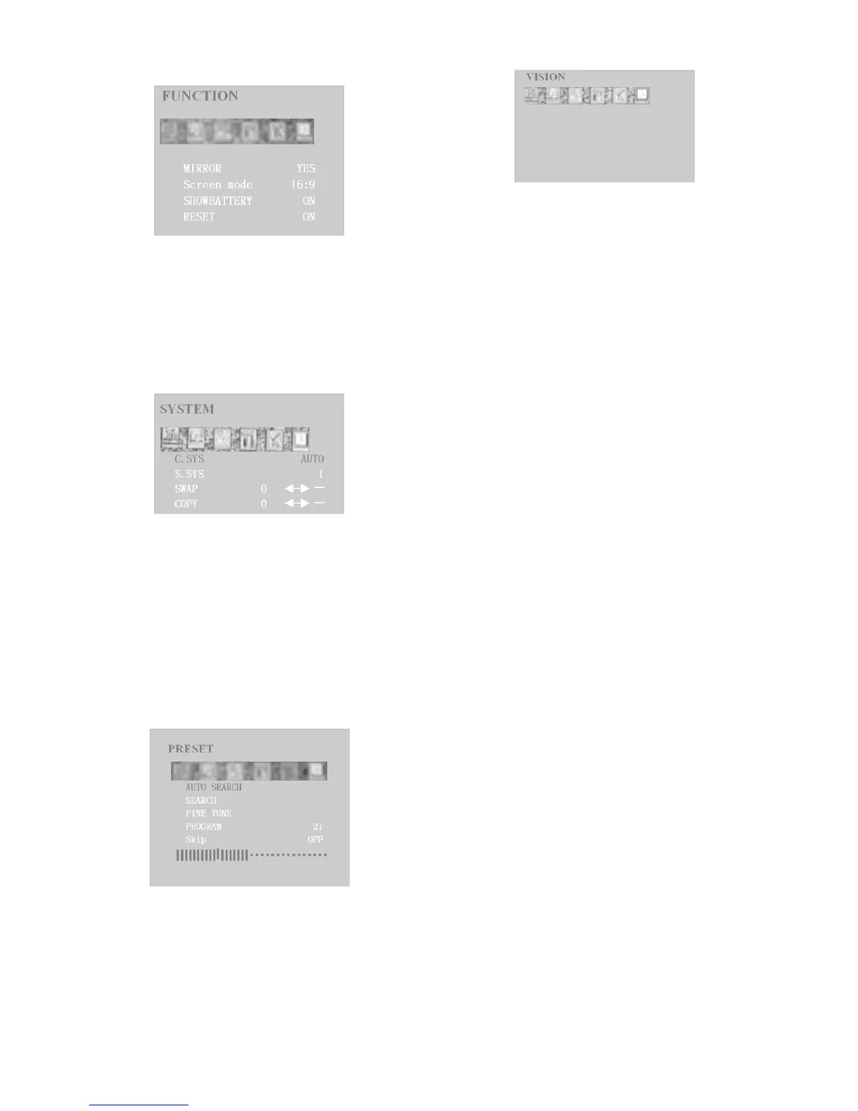 S.SYS: Adjust the sound mode of TV—I, L, BG, DK.
