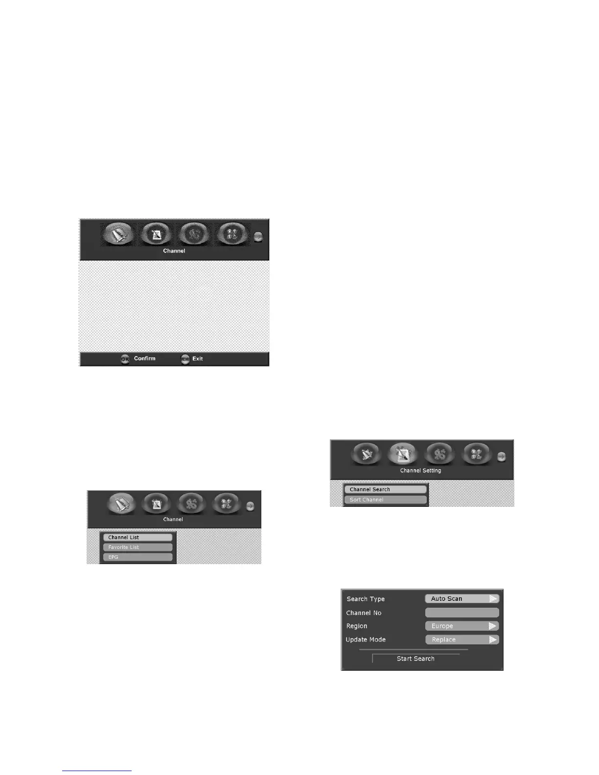 Gebruik de op/neer cursorknoppen om de kanaallijst naar