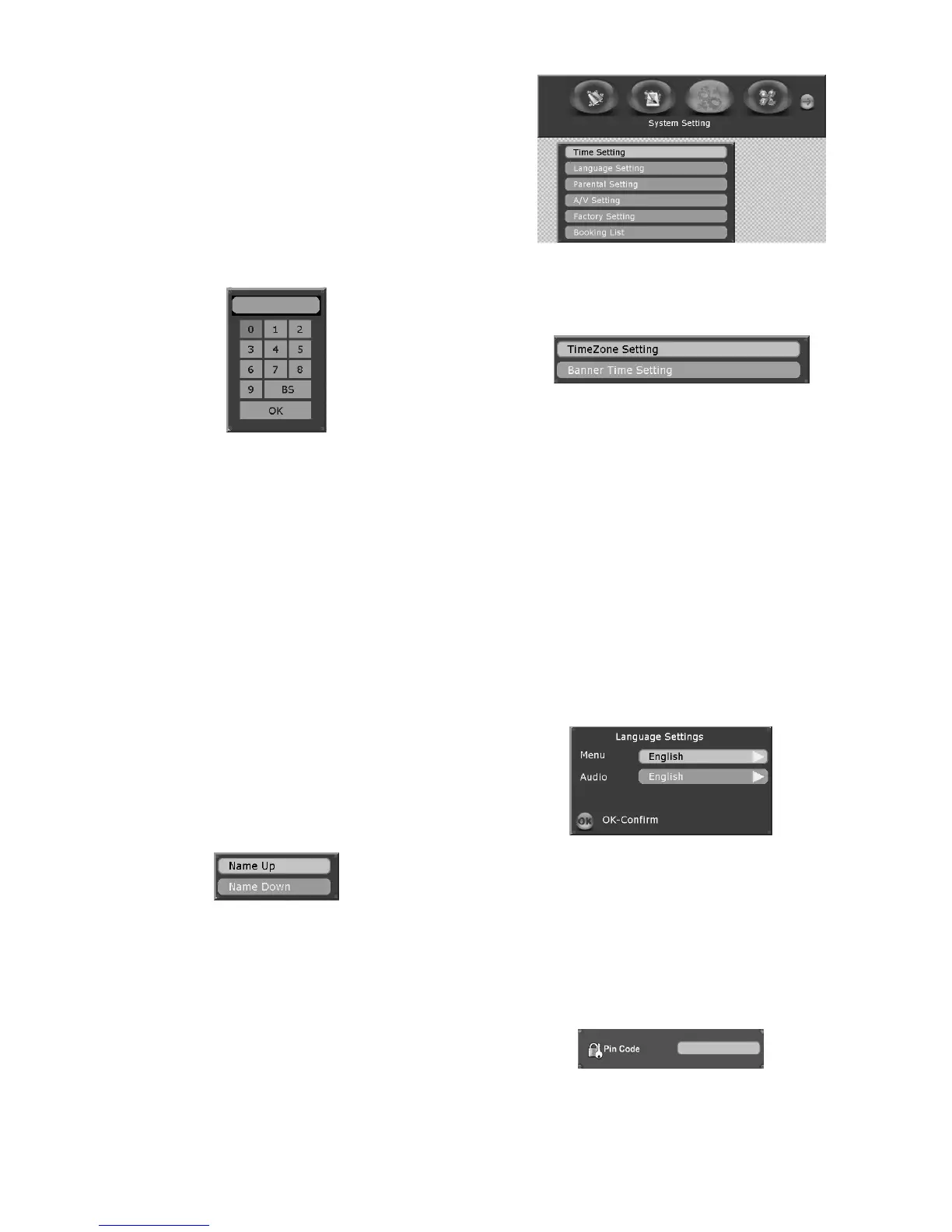 Bevat de volgende submenulijsten: TimeZone Setting en