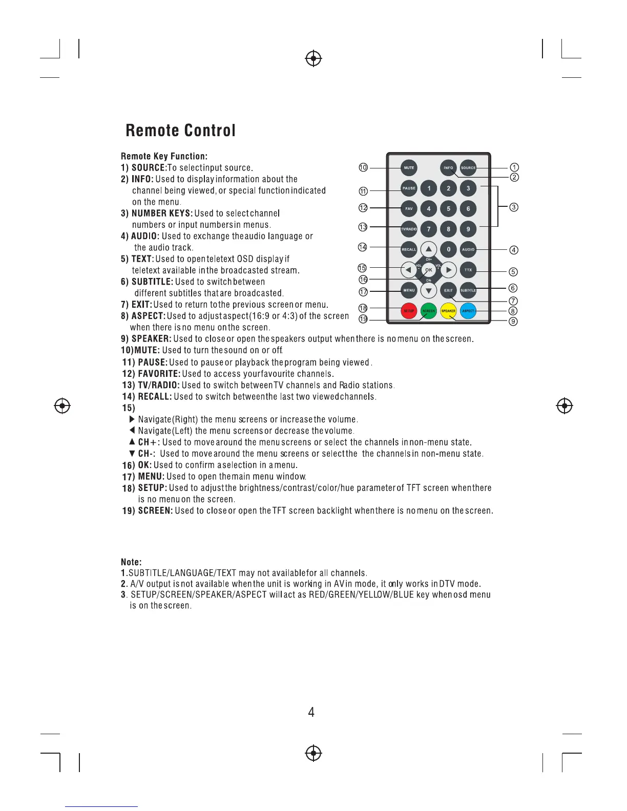 LENCO TFT-725 - Remote Control; About Built-in Rechargeable Battery; Precautions related to battery recharge; Using and maintaining your rechargeable batteries