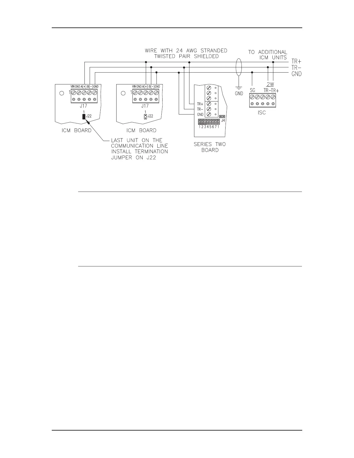 To enable RS-485 termination, install jumper on pin header J22 (on the last unit on the communication line).