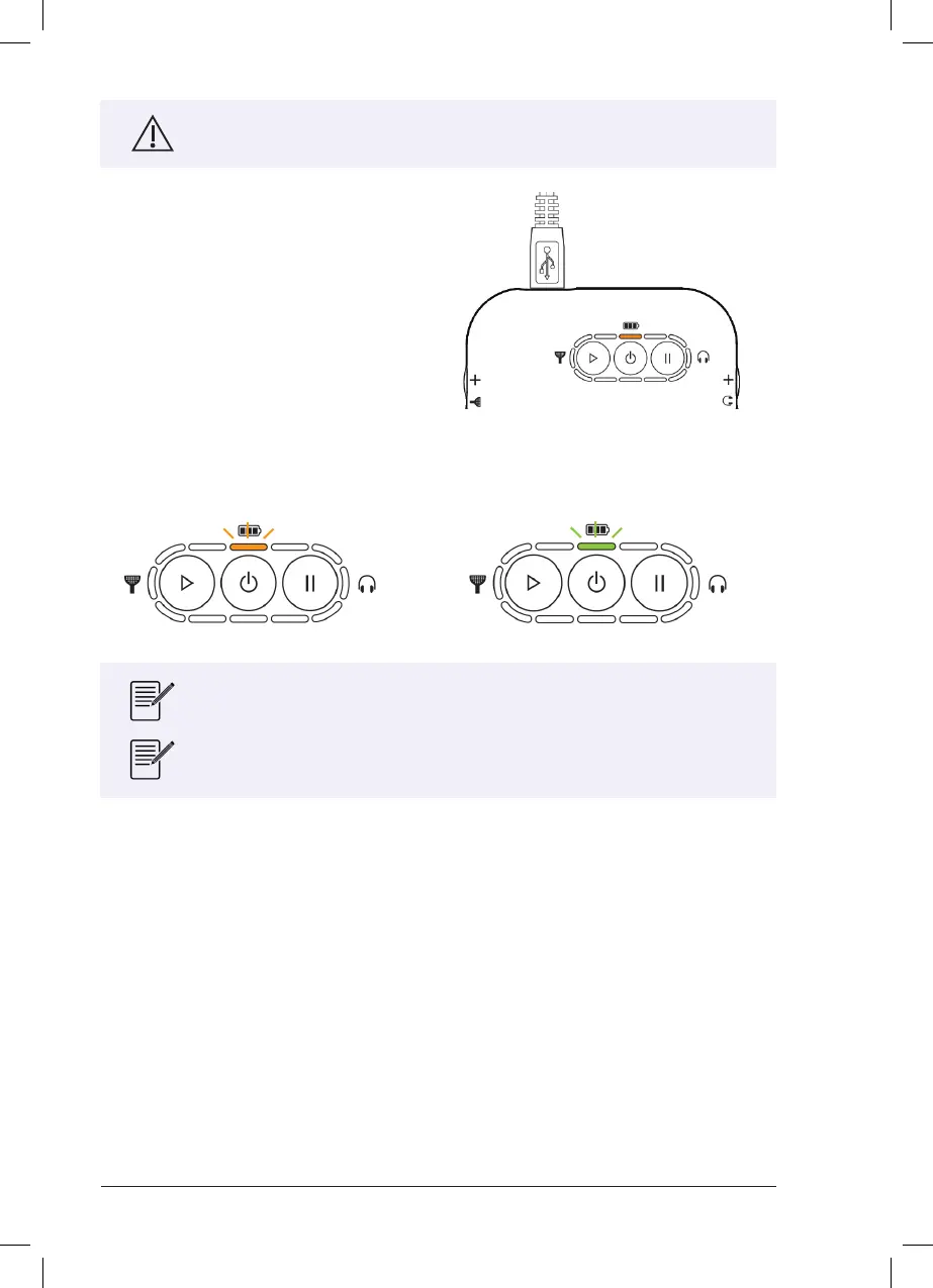 While charging, the Battery Indicator will pulse orange. Once the battery is fully charged, the