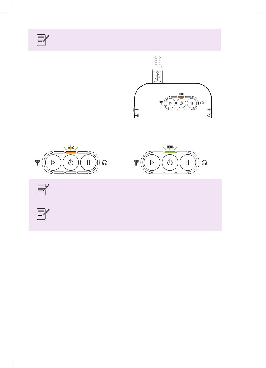 Während des Ladevorgangs blinkt die Akkuanzeige orange. Nach dem vollständigen Auaden