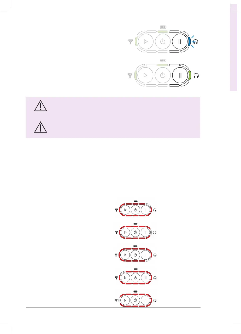 leuchten konstant rot. Die Position der nicht aktivierten Leuchte zeigt an, welcher Fehler