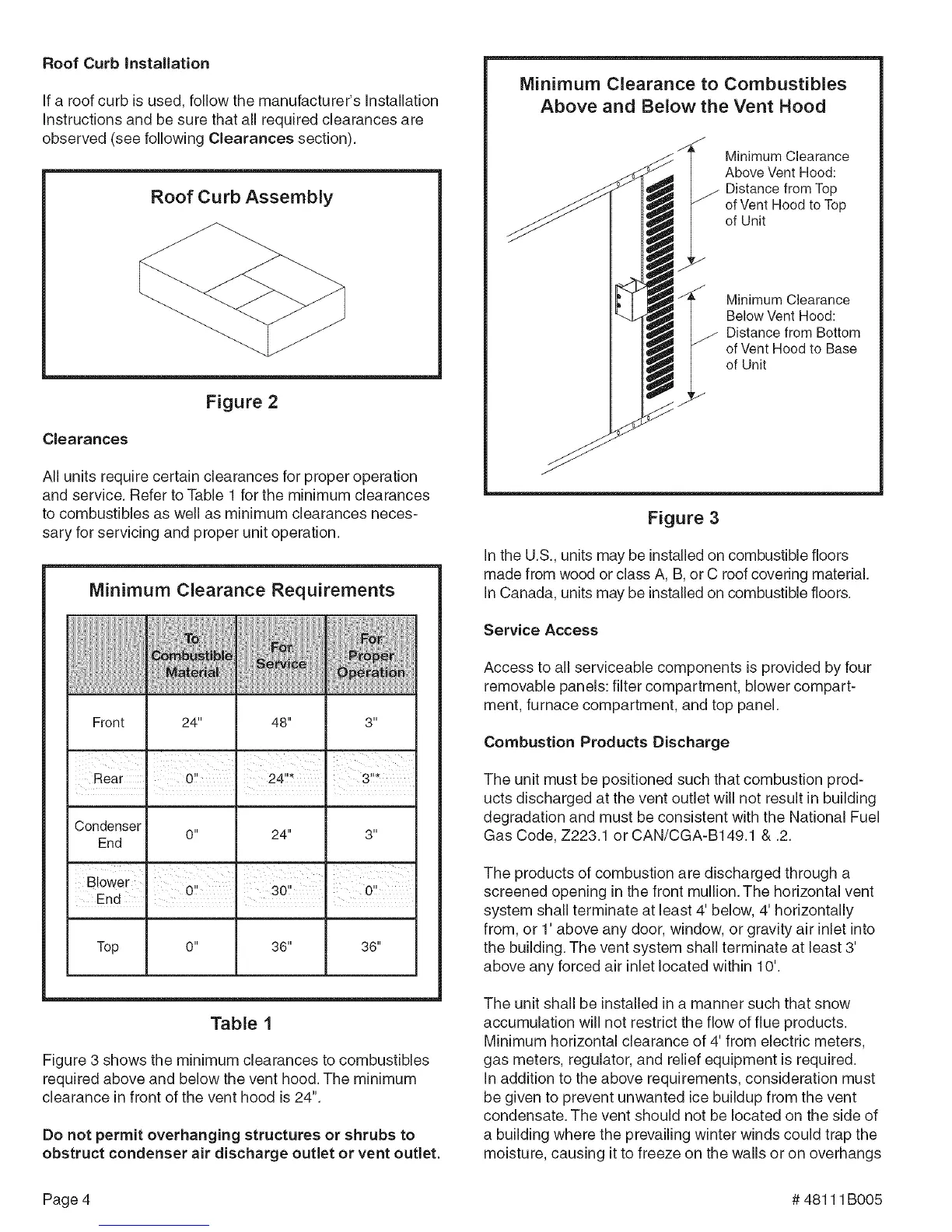 and service. Refer to Table 1 for the minimum clearances