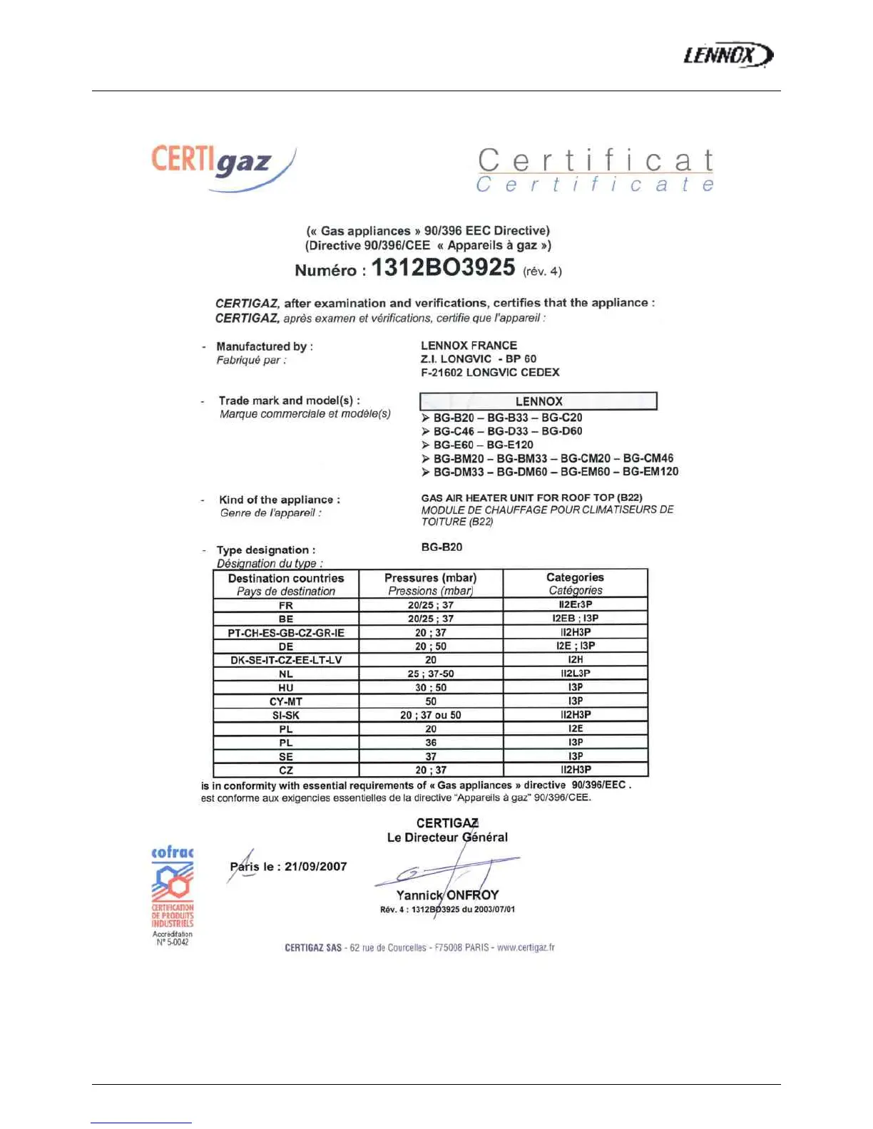 Lennox BAH030SNM
