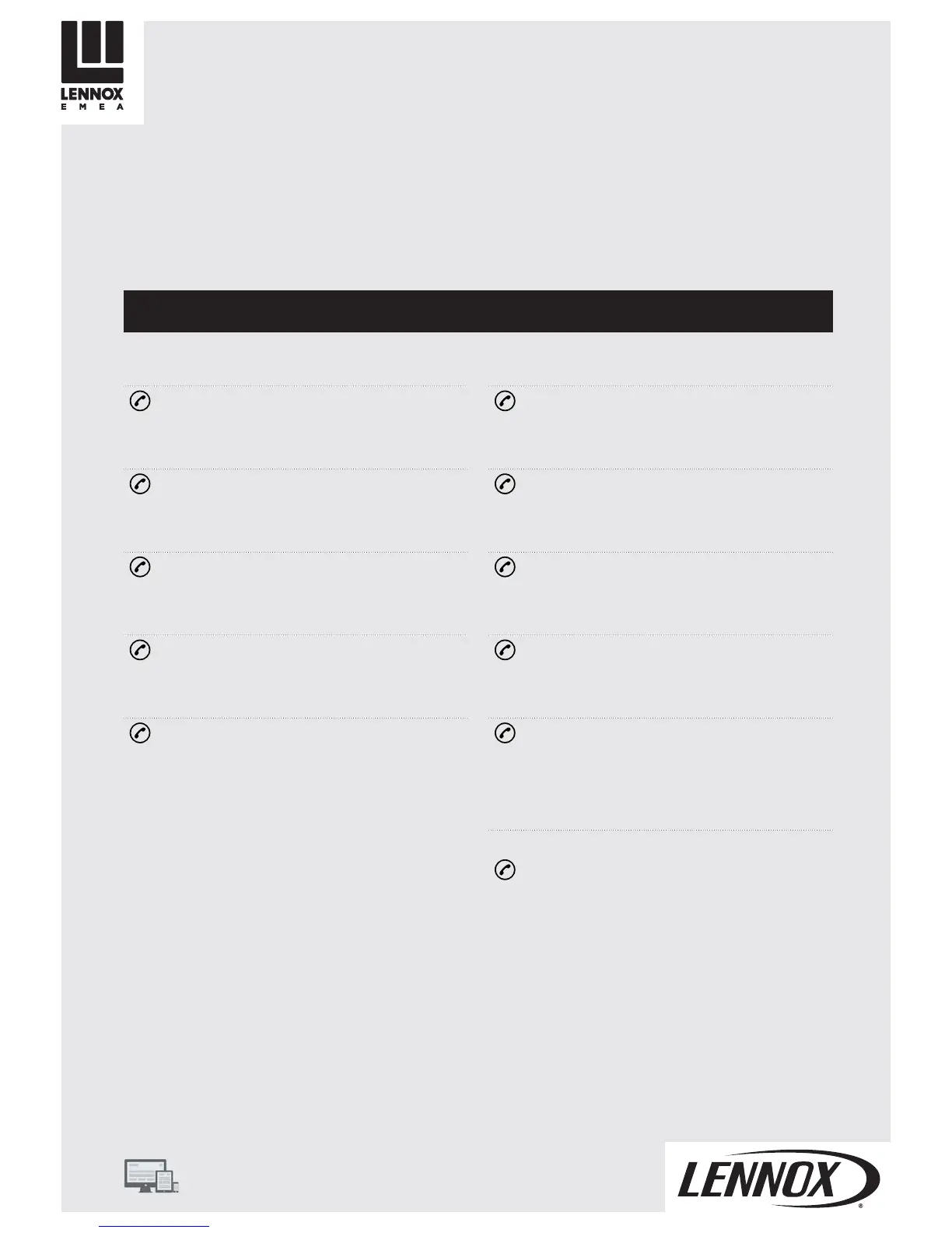 Due to LENNOX EMEA ongoing commitment to quality, the specifi cations, ratings and