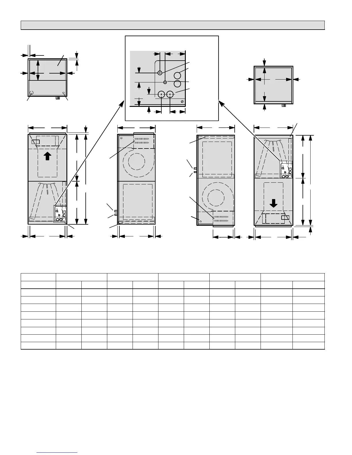 CB30M Upflow and Downflow Unit Dimensions − inches (mm)