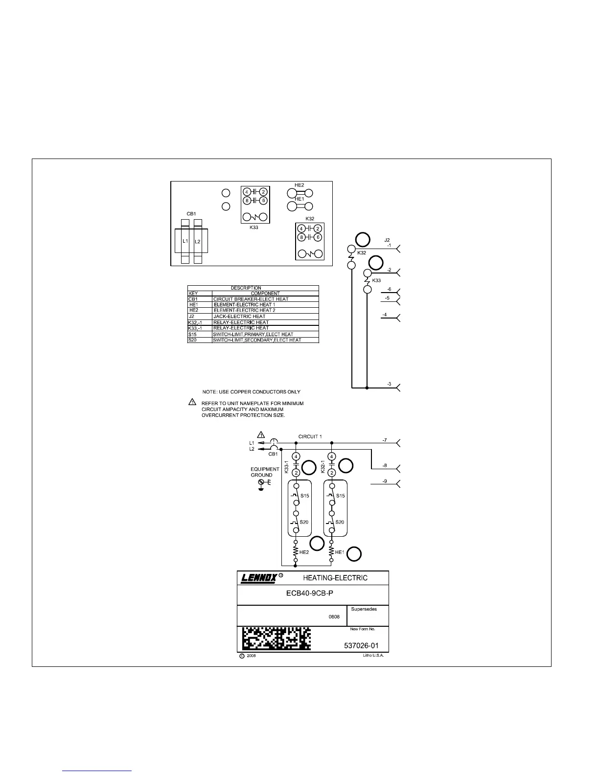 2. When K33‐1 closes, assuming the N.C. primary (S15) and secondary (S20) limit switches are closed, electric heat