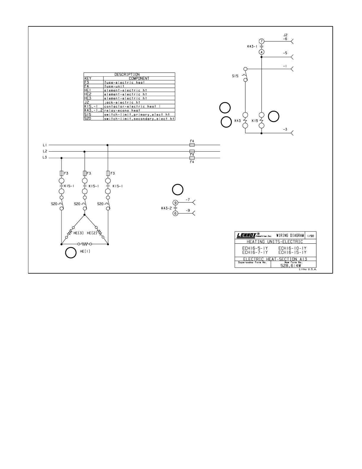 2- When K43-1 closes, heat relay K15 is energized.