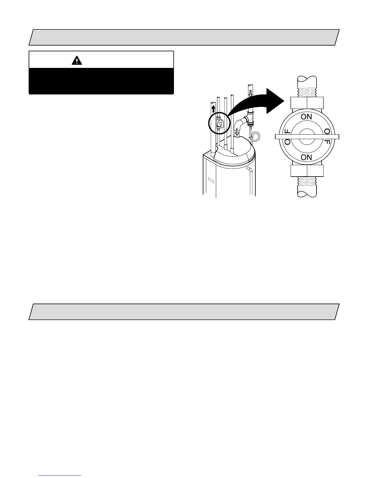 3- Turn knob on main manual shutĆoff valve 90_ clockwise to OFF. Do not force.