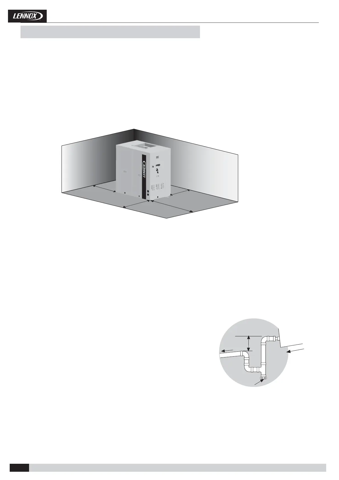 Clearance around the unit for service and maintenance