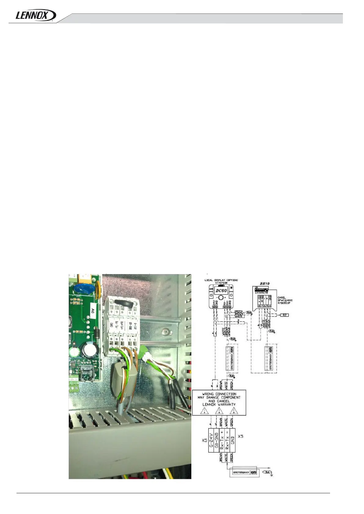 Wrong polarity may cause serious damage and destroy the Plan network. Lennox will not accept liability for