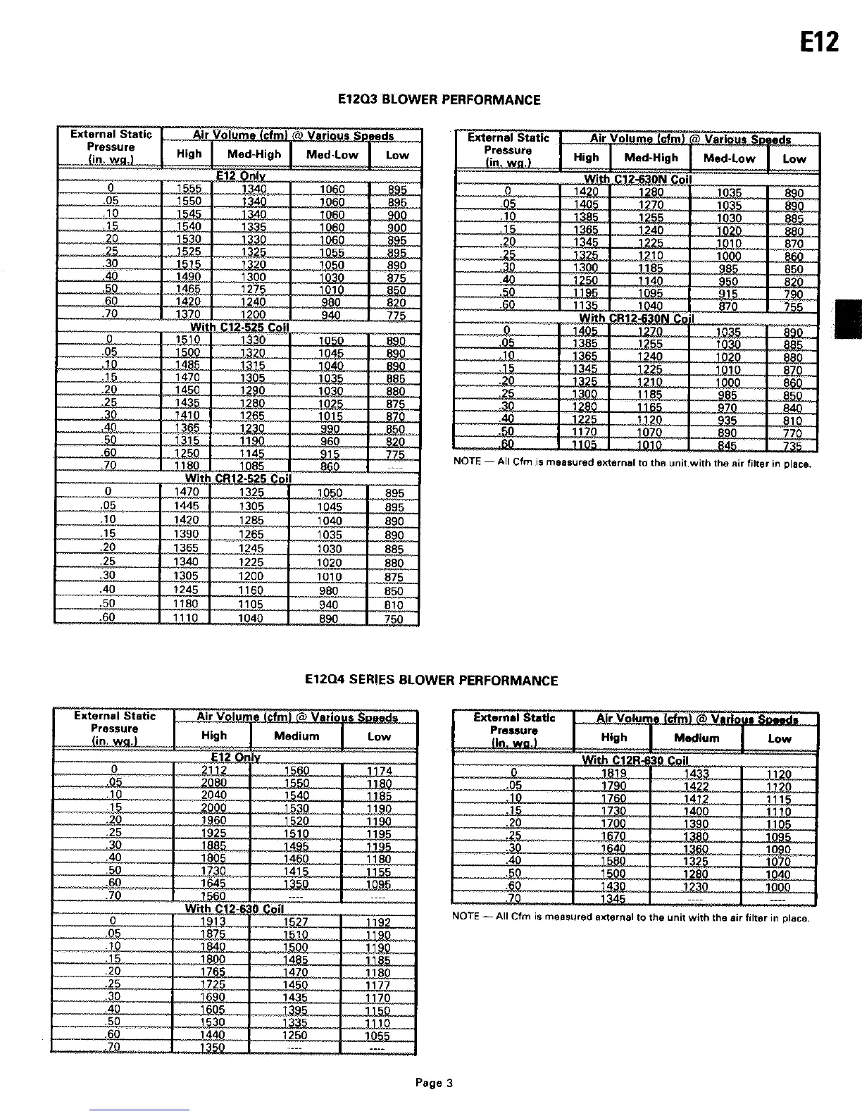 Lennox E12Q3-20 - E12 Q3 and E12 Q4 Series Blower Performance; E12 Q3 Blower Performance with Coils; E12 Q4 Blower Performance with Coils